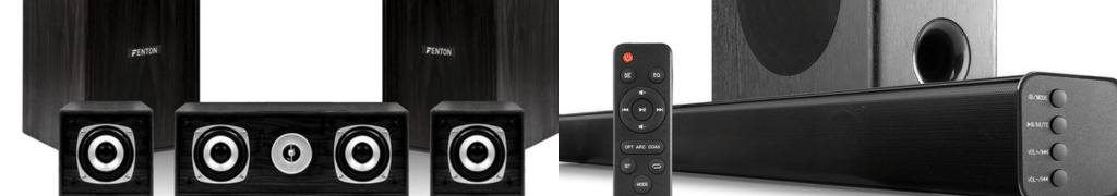 For example, the Fenton 5.1 Home Cinema Surround Sound System includes five hi-fi speakers, made up of two front tower speakers, two rear speakers and a centre speaker. The package also includes an 8-inch subwoofer and a 5-channel amplifier to effortlessly connect your TV and other devices.